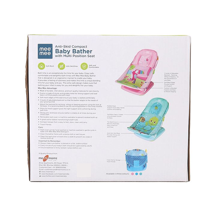Mee Mee Baby Bather . Enjoy safe, comfortable and delightful bath times with mee mee's baby bather that is designed in an ergonomic manner to cradle your baby. Mee mee bather is carefully made to the highest safety standards keeping baby in mind.